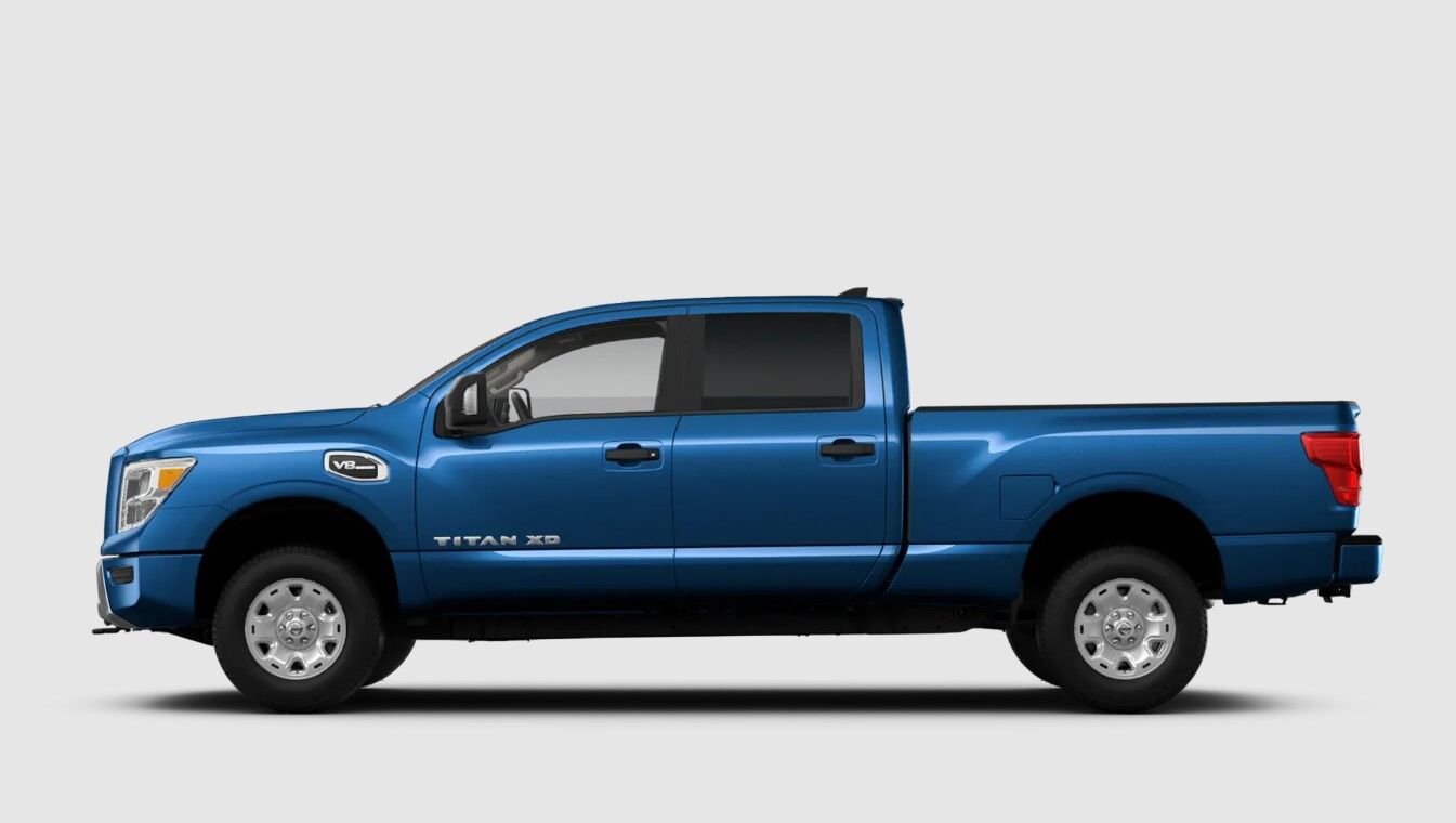 The 2023 Nissan Titan has multiple trim levels available, which include the S, SV, SL, and Platinum. The vehicle boasts a significant cargo space with plenty of legroom in the front and back rows. Three different bed lengths are also available to accommodate different drivers. Features you can find in the cabin include Apple CarPlay, Android Auto, an 8-inch touchscreen, and wireless charging. Drivers can choose to upgrade to a larger 9-inch touchscreen, multiple USB ports, and an advanced Fender audio system.