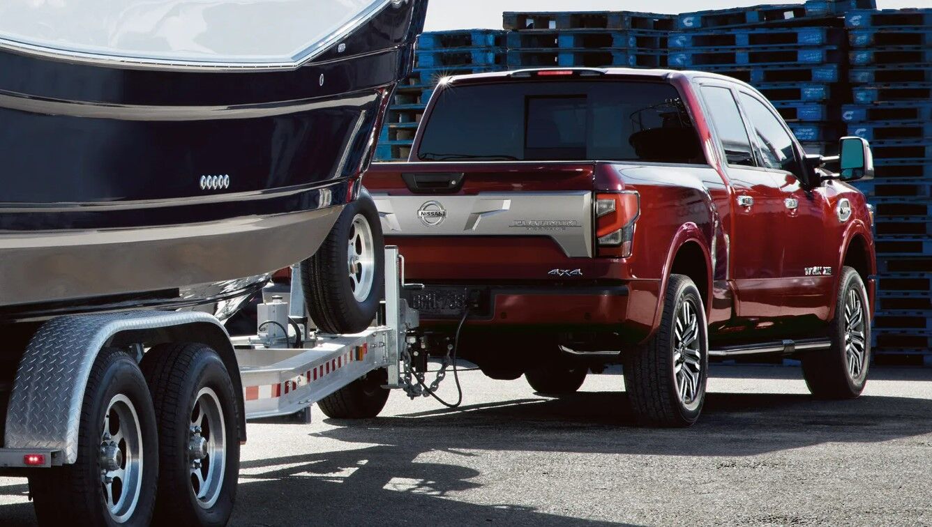 With TITAN, handle the big jobs with a max towing capacity of up to 9,320 lbs. with the King Cab 4X2. Need even more? Tow with confidence with the TITAN XD offering a max towing capacity of up to 11,060 lbs.