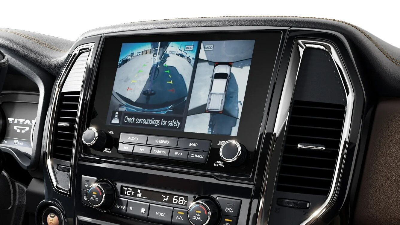 The new Nissan Titan at Johnson City Nissan in Johnson City, TN comes standard with many active safety features, including a 360-degree camera, blind-spot monitoring, and adaptive cruise control. A motion-detector system is also an advanced feature in the cabin to reduce the risk of a collision.